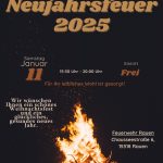 - Neujahrsfeuer – 2024 Feuerwehr RauenEinladung zum Neujahrsfeuer 2024 Die Freiwillige Feuerwehr Rauen und der Feuerwehrverein Rauen laden euch herzlich zum diesjährigen Neujahrsfeuer am 13. Januar 2024 um 15:30 Uhr an der Feuerwache Rauen ein. Für jeden mitgebrachten Weihnachtsbaum gibt es einen Glühwein gratis! Freut euch auf eine gemütliche Runde mit Bratwurst, Pommes und Glühwein. Bitte beachtet, dass wir in… Neujahrsfeuer – 2024 Feuerwehr Rauen weiterlesen