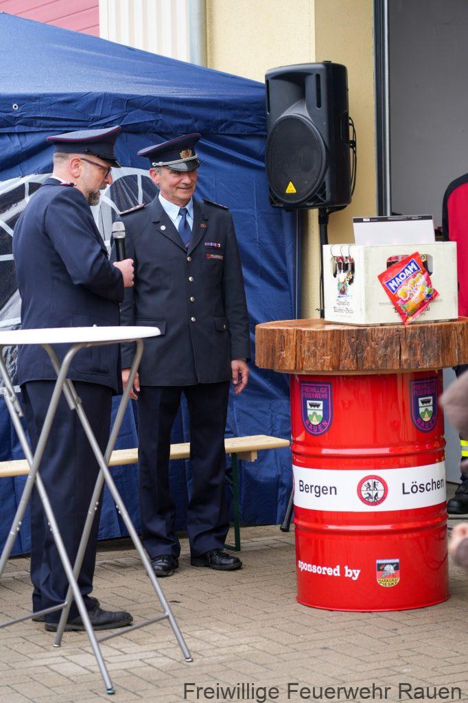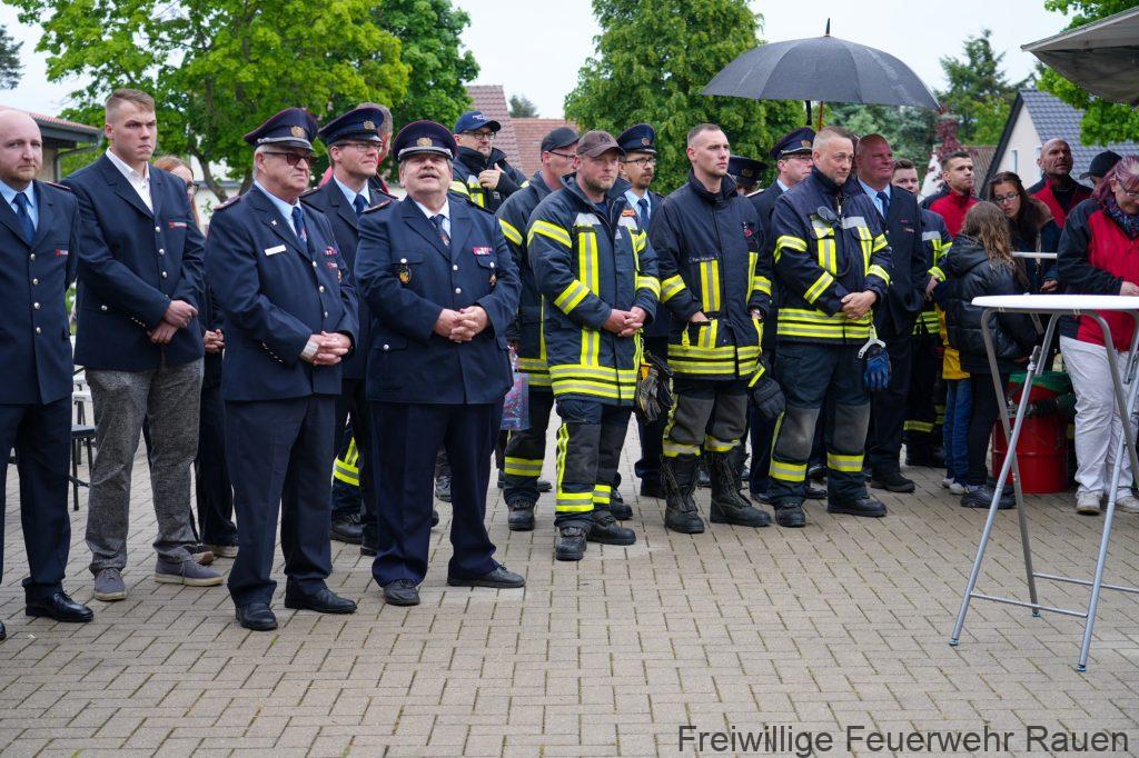 Pünktlich um 14 Uhr startete unser Festumzug vom Sportplatz. Gemeinsam mit unserer Freiwilligen Feuerwehr Rauen, der Jugendfeuerwehr und zahlreichen Feuerwehren aus der Umgebung fuhren wir in Richtung Feuerwehrdepot in die Chausseestraße. An der Feuerwehr angekommen, wurde das Fest mit Grußworten des Ortswehrführers, Bürgermeisters, Amtsbrandmeister, Amtsdirektor, Stellv. Kreisbrandmeister und einer Abordnung vom Kreisfeuerwehrverband eröffnet.