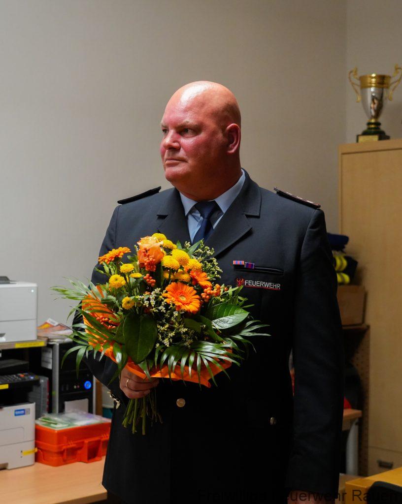 Außerdem gab es Grund zur Freude: Christian Hübel und Dominik Lehmann wurden zum Feuerwehrmann befördert. Für ihren langjährigen Einsatz wurden zudem Lars Normann für 30 Jahre und Ronny Flanse für 40 Jahre Feuerwehrdienst geehrt.