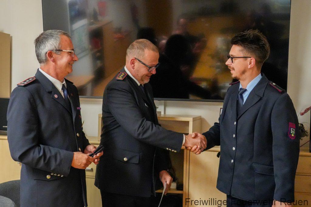 Außerdem gab es Grund zur Freude: Christian Hübel und Dominik Lehmann wurden zum Feuerwehrmann befördert. Für ihren langjährigen Einsatz wurden zudem Lars Normann für 30 Jahre und Ronny Flanse für 40 Jahre Feuerwehrdienst geehrt.