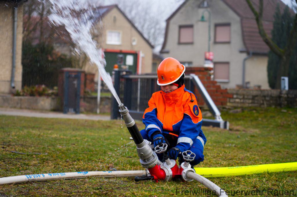 Nach der Theorie ging es direkt in den praktischen Teil über: Gemeinsam bauten wir einen Wasserwerfer (Monitor) auf. Hier konnten die Jugendlichen ihr Wissen und ihre Teamfähigkeit unter Beweis stellen. Trotz der winterlichen Temperaturen war die Begeisterung spürbar – denn der Umgang mit Technik und Wasser ist immer ein Highlight. 🧯💧