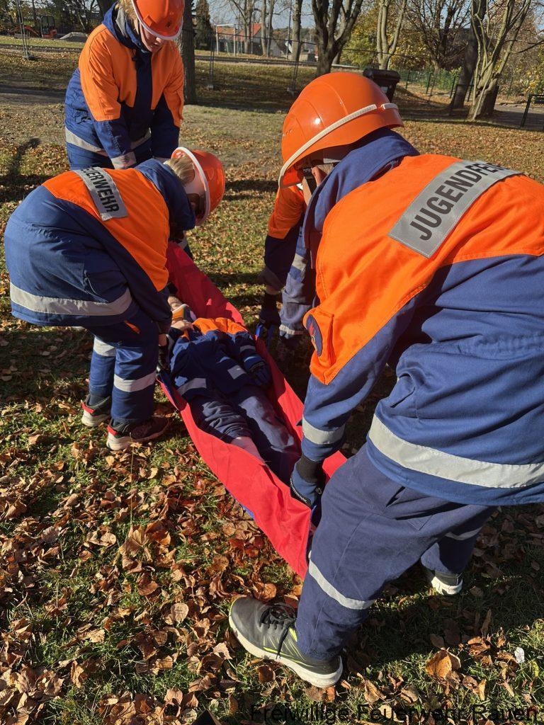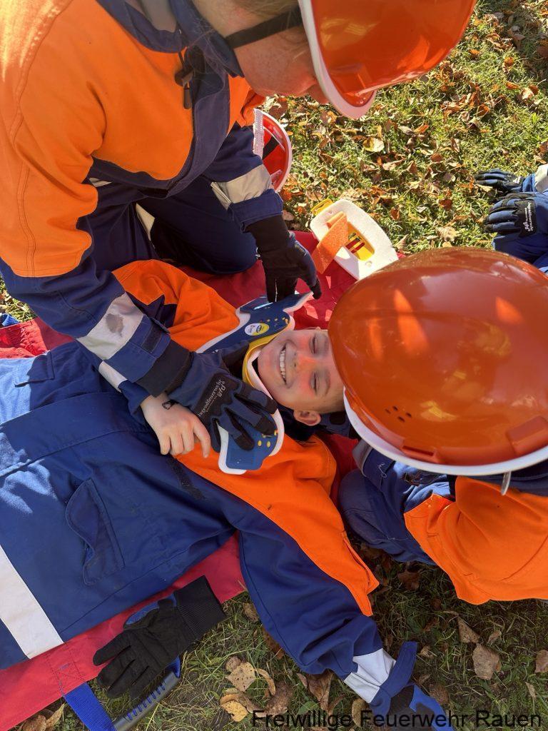 Bei unserer letzten Jugendausbildung ging es um das Thema Erste Hilfe. Zuerst haben wir gemeinsam besprochen, wie man einen Notruf richtig absetzt und welche Infos die Leitstelle unbedingt braucht. Danach wurde praktisch geübt. Die Jugendlichen probierten spielerisch aus, wie man jemanden in die stabile Seitenlage bringt und worauf man dabei achten muss. Anschließend haben wir das Verbinden von kleineren „Verletzungen“ geübt. Dabei konnten alle ausprobieren, wie man Verbände richtig anlegt und sich gegenseitig helfen kann. Die Ausbildung hat allen viel Spaß gemacht und gleichzeitig gezeigt, wie wichtig Erste Hilfe im Alltag und im Feuerwehrdienst ist.